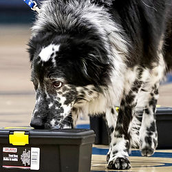 No distractors in boxes here! Just searching for odor. This is a low-pressure class focused on leash handling and supporting the dog without "helping"! Searches include both known (known=handler knows location and number of hides) and "blind" (blind=handler does not know location of hides) searches. A variety of containers will be included. Please plan to hand off your phone so a classmate can video some of your searches. Teams should be proficient in odor. This class is most appropriate for teams at the ORT/NW1 and Novice/Advanced levels.